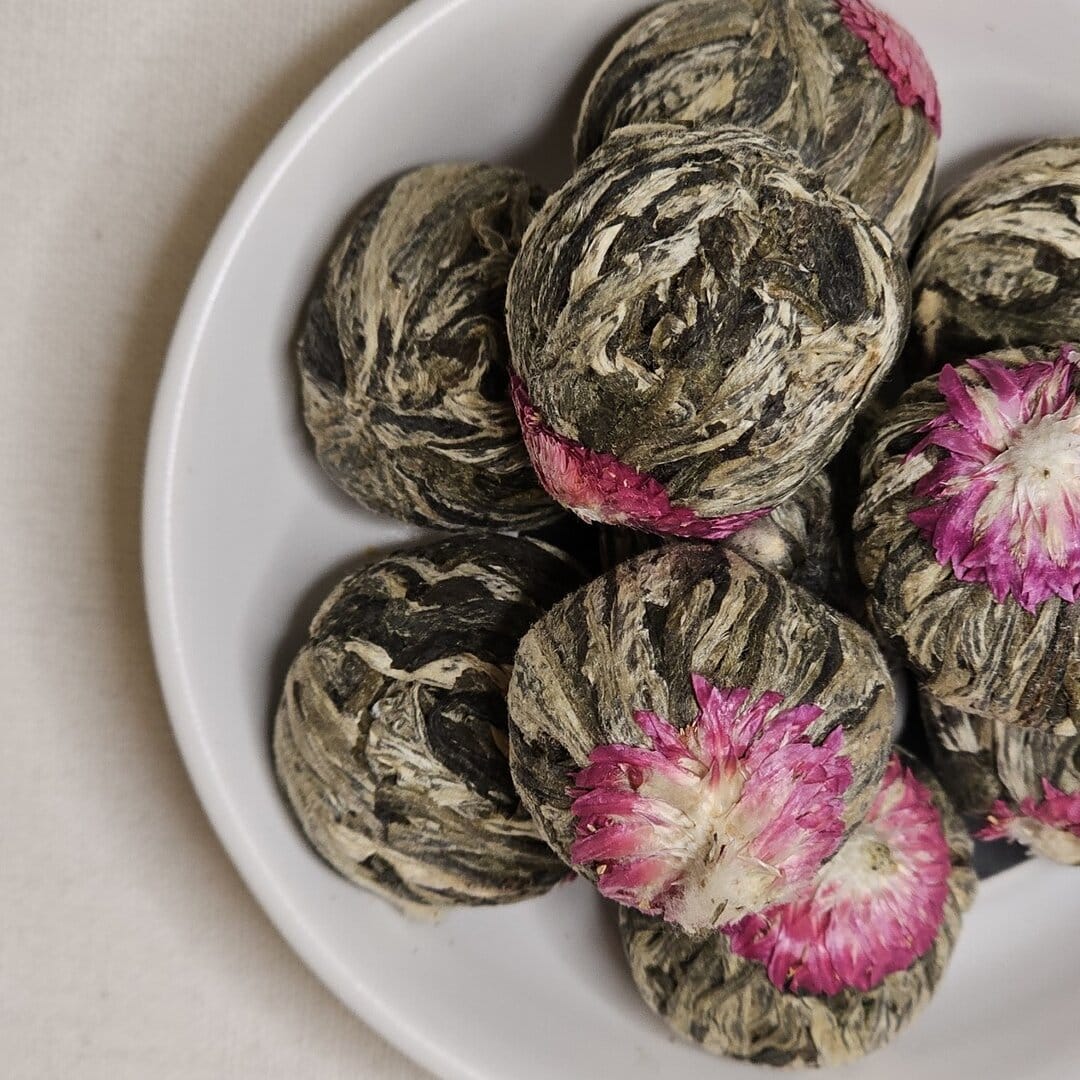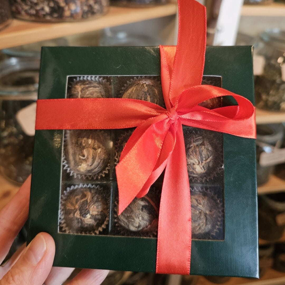 W eleganckim pudełku znajdziesz 9 ręcznie zwijanych kul herbat kwitnących – każda z nich po zalaniu gorącą wodą rozwija się, odsłaniając ukryty w środku kwiat. To nie tylko herbata, ale mały spektakl, który zachwyca za każdym razem.