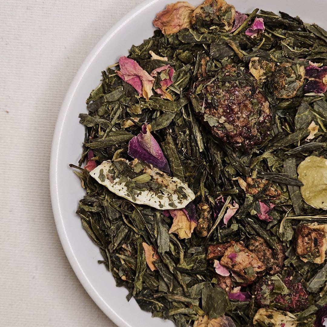 Odkryj magię Sencha Figa z Maliną, gdzie delikatna zielona herbata spotyka się z bogactwem liofilizowanych owoców malin i jeżyn, delikatnością kawałków fig, truskawek oraz subtelnym akcentem płatków piwonii. Każdy napar to wyjątkowe połączenie świeżości zielonej herbaty z lekko kwaskowatym smakiem owoców. Zanurz się w smakowej podróży przez ogrody zielonej herbaty, owocowe gaje i piękne kwiatowe akcenty. Ta unikalna kompozycja nie tylko zadowoli Twoje podniebienie, ale także dostarczy korzyści zdrowotnych związanych z zieloną herbatą oraz naturalnymi owocami. Poznaj Senchę Figa z Maliną – niezrównaną przyjemność dla miłośników aromatycznych herbat.