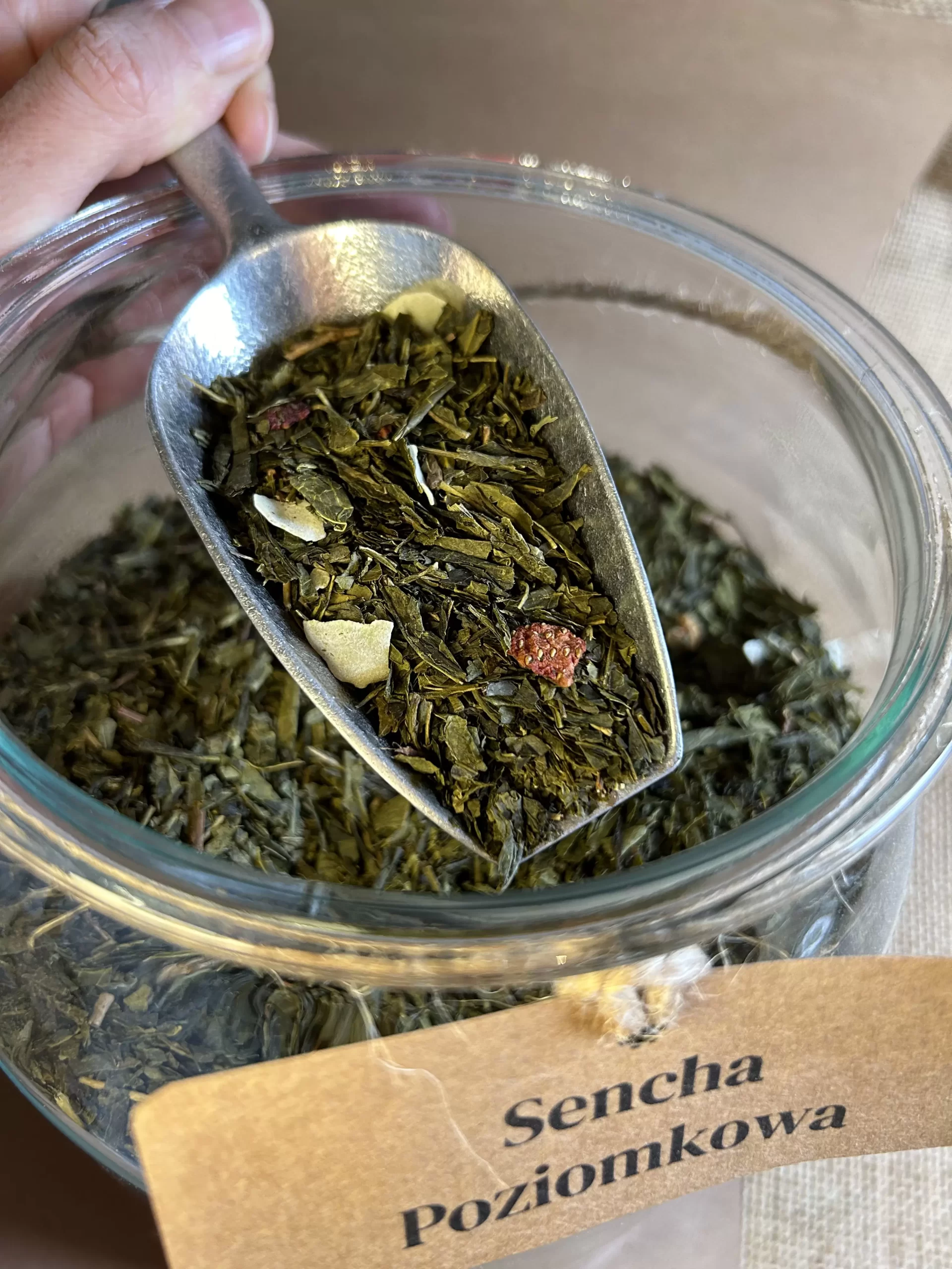 Odkryj Senchę Poziomkową, gdzie delikatna zielona herbata spotyka się z kremowymi kawałkami kokosa, soczystymi liofilizowanymi poziomkami i subtelnością aromatu. Każdy napar to niepowtarzalna mieszanka, która przeniesie Cię do magicznej krainy świeżych poziomek. Ta wyjątkowa kompozycja nie tylko zadowoli Twoje podniebienie, ale także dostarczy korzyści zdrowotnych związanych zarówno z zieloną herbatą, jak i naturalnymi składnikami kokosa i poziomek. Poznaj Senchę Poziomkową – doskonałą propozycję dla miłośników owocowych herbat z delikatnym akcentem egzotyki.