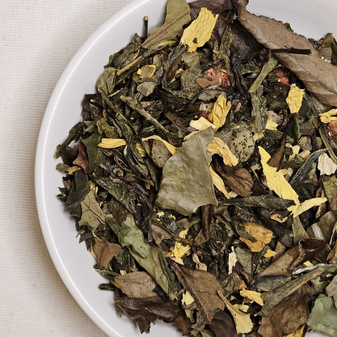 Odkryj Siedem Zielonych Skarbów, gdzie mistrzowskie połączenie senchy, gunpowder, chun mee, pai mu tan, pi lo chun, kawałków ananasa, truskawek i słonecznika tworzy unikalną mieszankę. Każdy napar to podróż po plantacjach herbaty, gdzie doświadczysz różnorodności i intensywności smaków. Ta wyrafinowana kompozycja nie tylko zadowoli Twoje podniebienie, ale także dostarczy chwil relaksu i rozkoszy zielonych herbat. Poznaj Siedem Zielonych Skarbów – doskonałą propozycję dla miłośników zróżnicowanych i wyszukanych herbat.