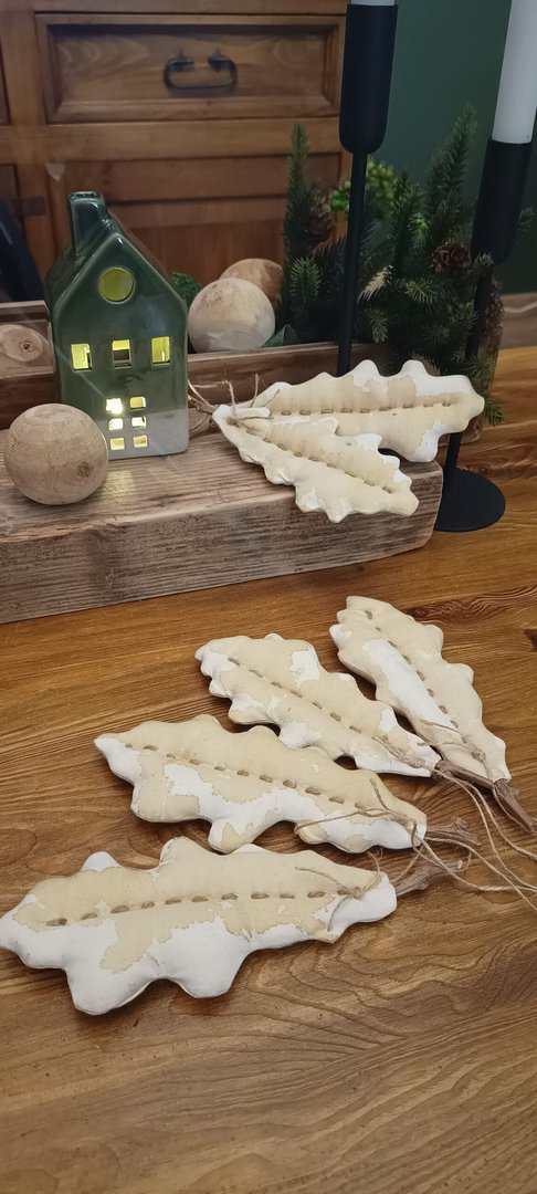 Odkryj urok ręcznie szytych liści dębu wykonanych z lnu. Każdy egzemplarz tworzymy z pasją i precyzją, nadając mu unikalny charakter. Barwimy liście naturalnymi składnikami, dzięki czemu zyskują ziemiste, harmonijne kolory, które wprowadzają ciepło do każdego wnętrza. Dodatkowo każdy liść otrzymuje prawdziwą gałązkę, co podkreśla jego indywidualność i związek z naturą.