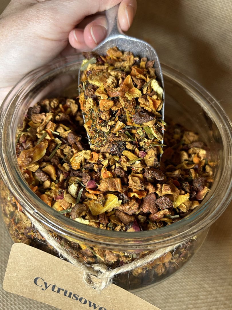 Odkryj radosny smak Cytrusowego Lata – wyjątkowej mieszanki, w której soczyste owoce, trawa cytrynowa i płatki róży tworzą harmonię smaków. To połączenie cytrusowej świeżości, które przeniesie Cię w letni nastrój!