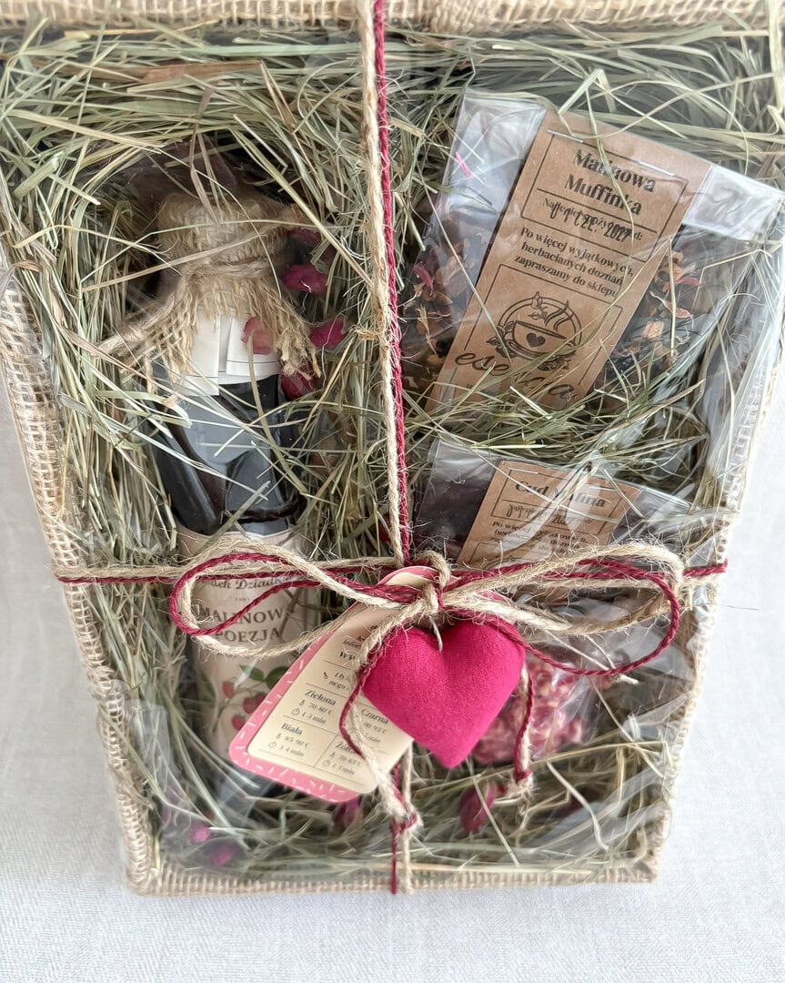 Wszystkie składniki zapakowane są w estetyczne, przezroczyste torebki i umieszczone w eleganckim pudełku. Całość przewiązana jutowym sznurkiem i ozdobiona naturalnymi dodatkami, zachwyca od pierwszego spojrzenia.