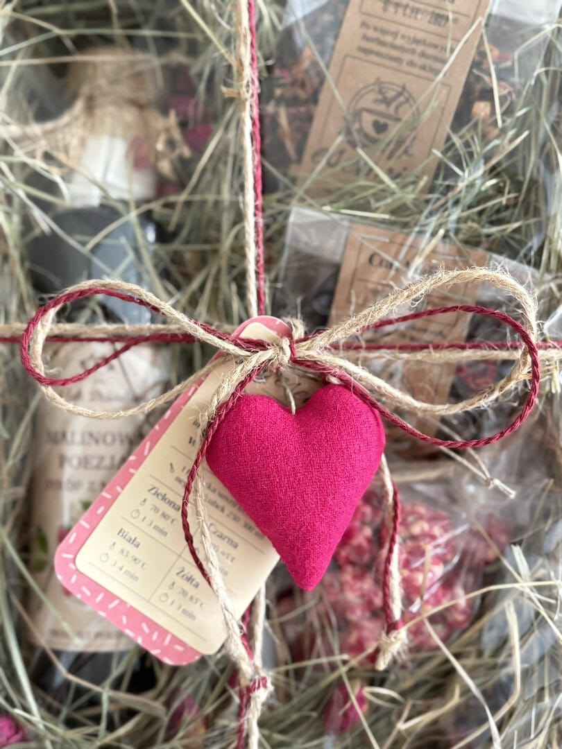 Zestaw może delikatnie różnić się od zdjęcia – w zależności od dostępnych materiałów (kolor sznurka, dekoracje, kształt serduszka). Ale zawsze zachwyca spójnością i urokiem.