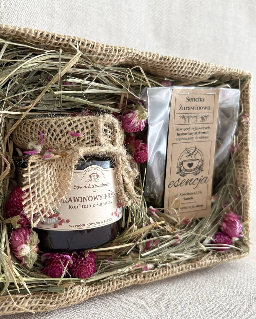 „Żurawinowa Harmonia” to mały, elegancki zestaw, który cieszy smakiem, wyglądem i uniwersalnością. Starannie zapakowany, gotowy do wręczenia – zachwyci zarówno minimalistów, jak i smakoszy.